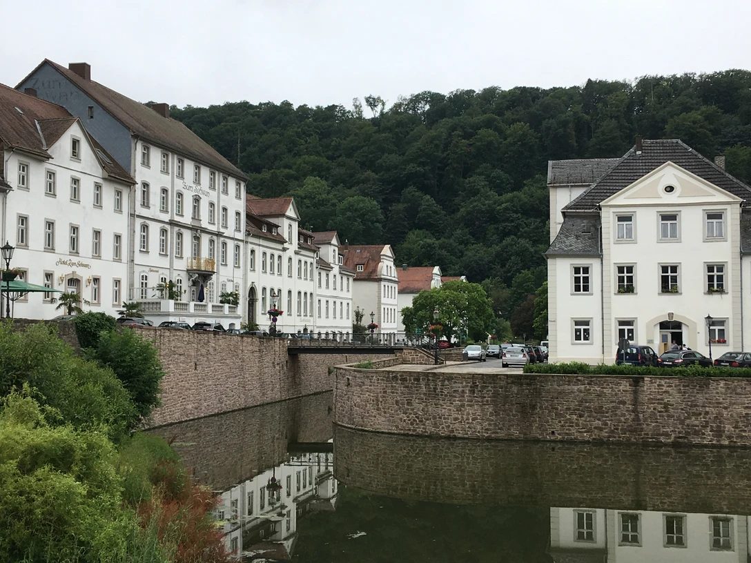 Das Appartement am Hafenplatz liegt im 1. Stock eines großen Hugenottenhauses aus dem Jahre 1770. Den Gästen steht eine liebevoll eingerichtete, geräumige Wohnung zur Verfügung. Gehbehindert sollten sie nicht sein, denn es sind einige (nicht allzu steile) Treppen zu bewältigen. Zum Appartement gehören eine Küche mit Herd, Waschmaschine und Kühlschrank, ein frischrenoviertes Duschbad, ein Wohnzimmer mit gemütlichen Sesseln, historistischem Schreibtisch, TV, WLAN und Musikanlage. Es gibt einen Biedermeier- Bücherschrank mit Literatur zur Geschichte und Umgebung Karlshafens. Bettwäsche für das Doppelbett im geräumigen Schlafzimmer wird gestellt (ebenso, wie Handtücher für' s Bad). Ausreichend Stauraum für Kleidung ist vorhanden. Auch ein Schminktisch fehlt nicht. Essen kann in der Küche selbst zubereitet werden. Im antiken Geschirrschrank wartet edles Geschirr der Porzellanmanufaktur Fürstenberg auf seine Benutzung, für frischen Kaffee gibt es eine elektrische Kaffeemühle. Im Garten steht eine kleine Sitzecke zur Verfügung. Ein gut sortierter Lebensmittelmarkt, Schlachter und Bäcker sind fußläufig zu erreichen, ebenso, wie allerhand Cafés und Restaurants rund um das Hafenbecken. Den besonderen Charme der Wohnung macht einerseits die Lage inmitten der barocken Altstadt mit Blick auf das revitalisierte Hafenbecken aus, andererseits ihre Einrichtung mit einem Mix aus modernen und antiken Möbeln, zahlreichen Stichen und Bildern, sowie den einzigartigen, handgemalten Fliesen des Bremer Künstlers und Illustrators Gregor Schöner. Ein Beistellbett für Kinder gibt es in der Wohnung nicht. Sie ist für 2 Personen geeignet. Größere Gruppen können leider nicht aufgenommen werden. Haustiere sind nicht gestattet. Für Spaziergänge oder Wandertouren in Solling und Reinhardswald und Ausflüge in die sehenswerten Orte der Umgebung und zur Kulturmetropole Kassel ist die Wohnung ein idealer Ausgangspunkt.